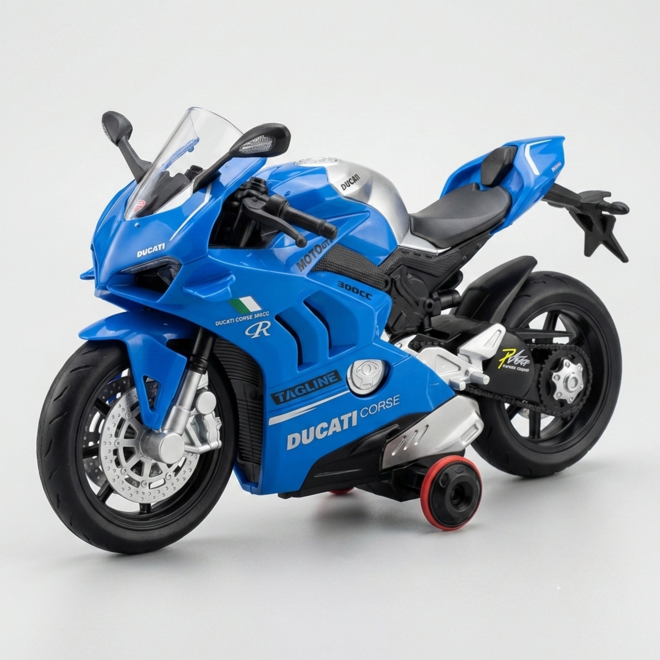 High-performance RC Bike ( DUCATI MODEL ). Equipped with high-speed motors, a 2.4GHz long-distance remote control and a rechargeable and replaceable battery, this is a modernised model that is very easy to control and has a sleek design. Best for indoor or outdoor fun.
